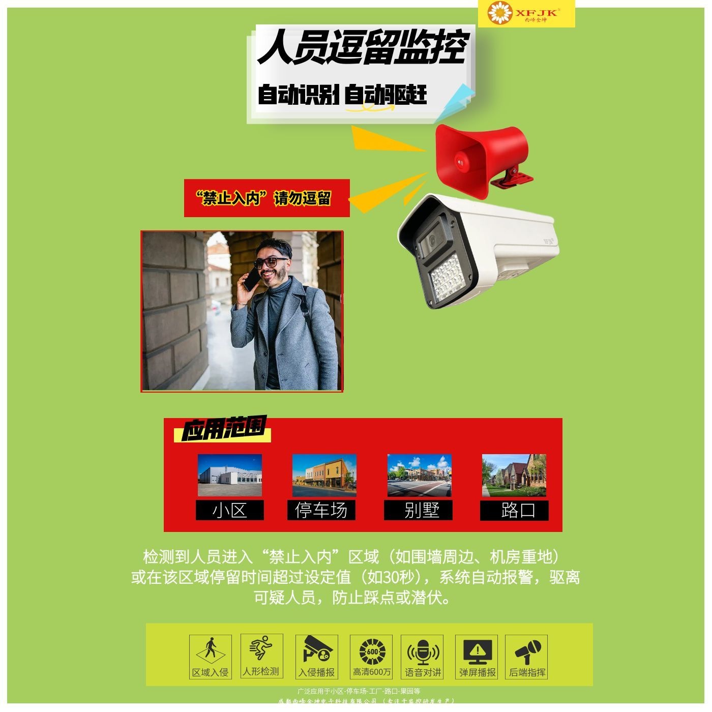 4G人员逗留监控人员徘徊滞留不离开后端前面报警喇叭远程摄像头
